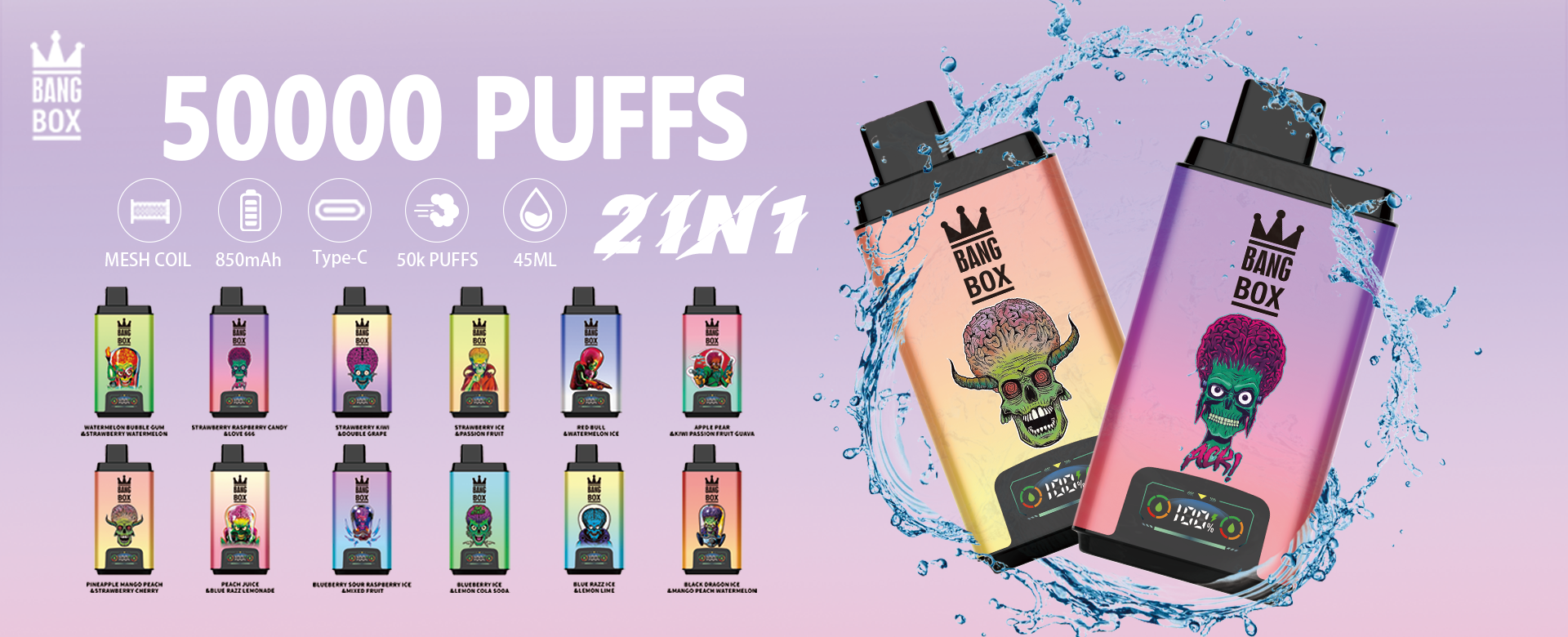 BANG BOX 50000 Puffs Double Flavor Disposable Vape-Blueberry Sour Raspberry Ice & Mixed Fruit